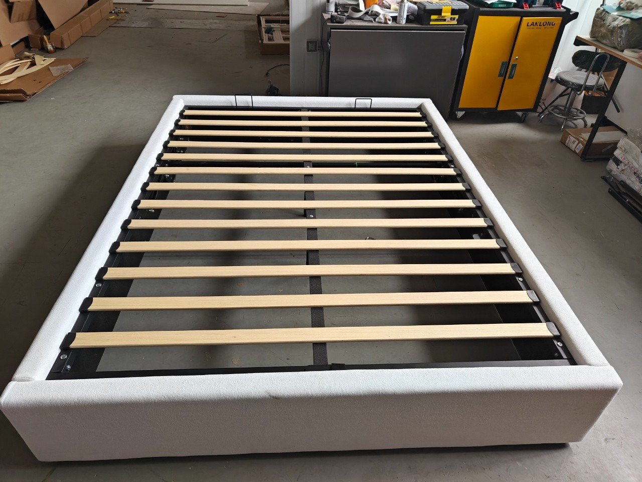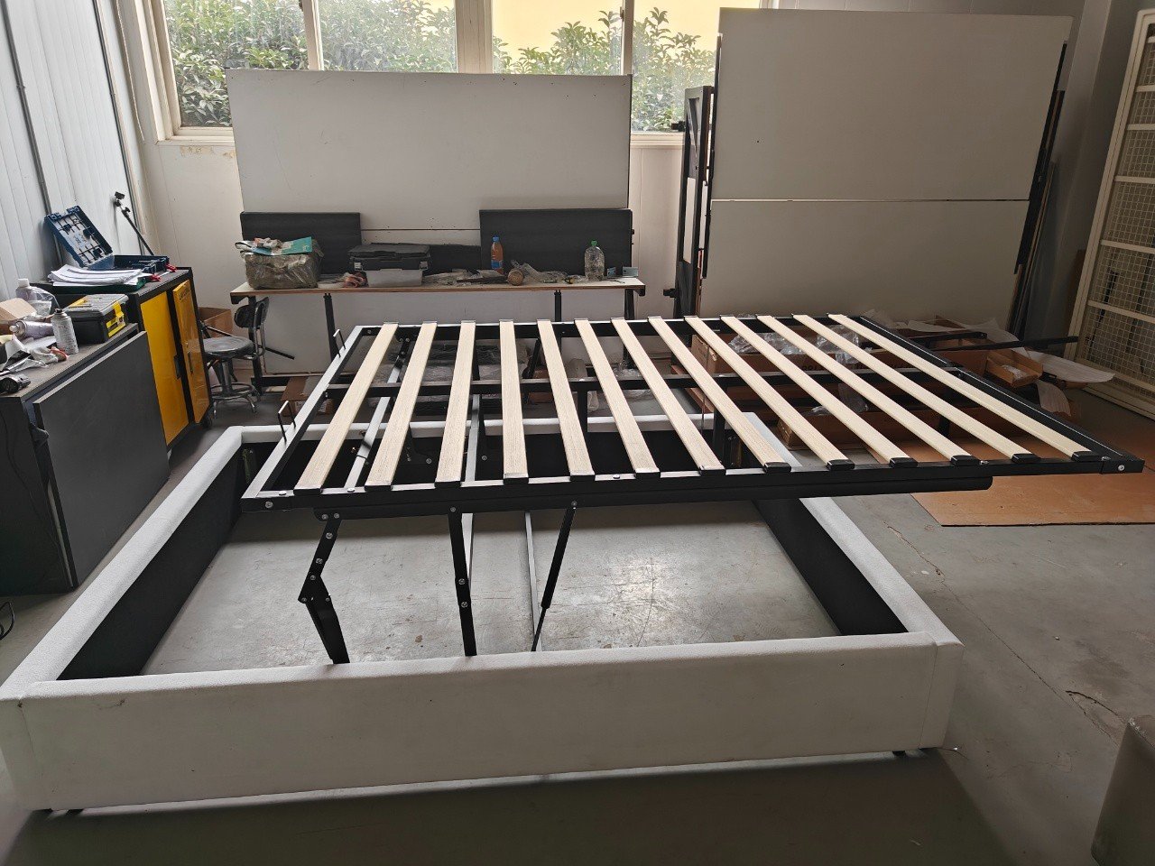 - Construction durable : le sommier métallique relevable (suffisamment robuste pour une utilisation à long terme) est associé à des lattes en bois massif (compatibles avec les matelas de 1,5 m et 1,8 m), garantissant une qualité constante pour les livraisons en gros.